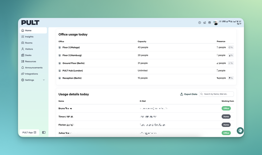 - A revamped graph now displays today’s office bookings, presence detection/Check-ins, and absences (vacation or sick leave) sourced from your integrated HRIS.