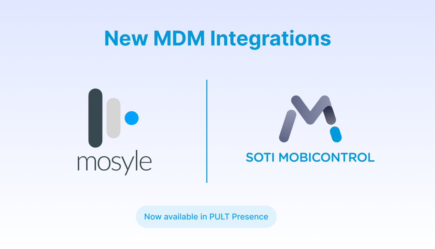 SOTI MobiControl — Pult now integrates with SOTI MobiControl, enabling device presence detection for organizations using SOTI as their MDM solution.